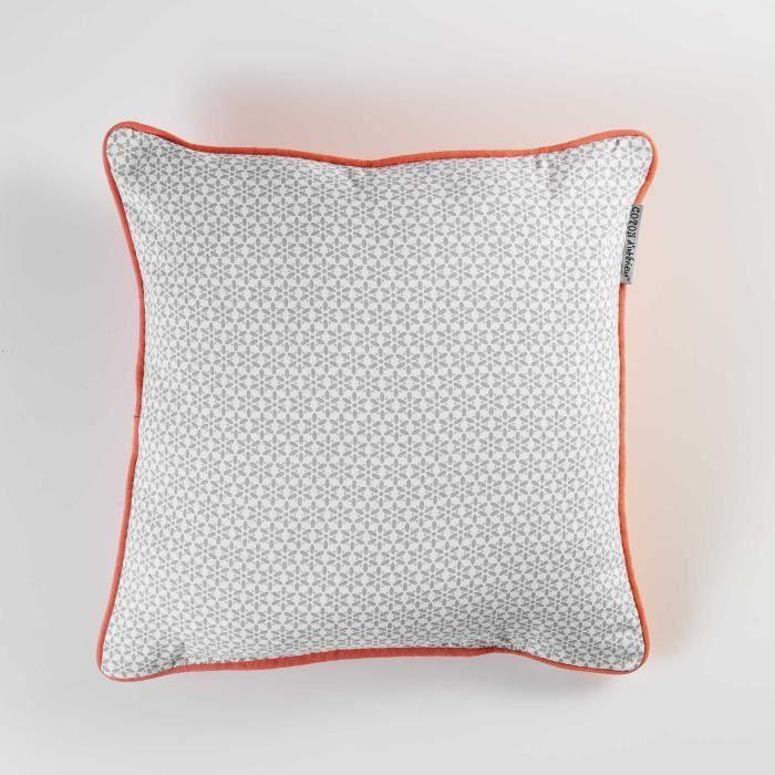 Coussin Passepoil 40 X 40 Cm Coton Imprimé Galactic Gris - CDaffaires