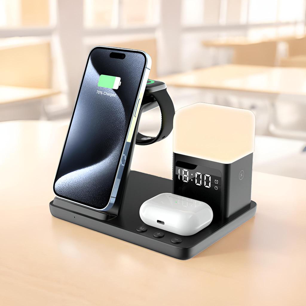 6in1 Wireless Charger Station with Alarm Clock Light For Watch Ultra 10 9 8 7 6 5 iPhone 16 15 14 13 12 11 Aipods 4 3 Pro