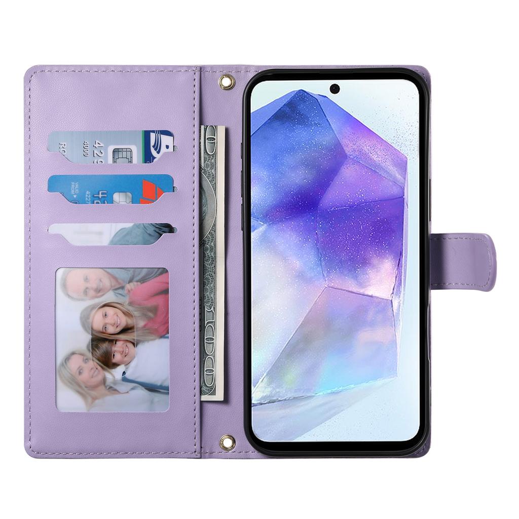 For Samsung Galaxy A55 5G Case Rhombus Stitching Wallet Stand Leather Phone Cover with Long/Short Strap