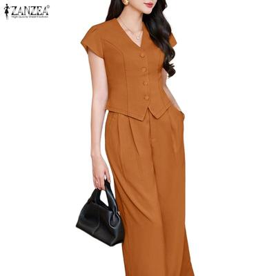 ZANZEA Women Vest Tops and Pants Summer Casual Two Piece Sets