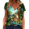 Trendy Women's Casual T-shirt Top V-neck Loose Short Sleeved Top Digital Printed 3D T-shirt