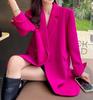 Elevate your wardrobe with this stylish medium-long casual blazer, perfect for spring and autumn. Designed with a vibrant rose red color, this suit jacket offers a flattering silhouette and comfortable fit. Crafted from high-quality polyester, it ensures durability and a smooth finish. Ideal for both professional and casual outings, this blazer effortlessly combines elegance with a modern touch.