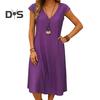 Women's Summer Cotton Linen Midi Dress V-Neck Short Sleeve Dress with Pockets Casual Beach A-Line Sundress