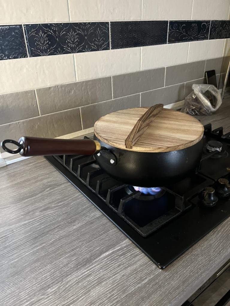 Versatile Culinary Companion: Unleash the thick design cooking pot's multifunctional prowess with 7-in-1 capabilities suitable for various cooking styles. From stir-fries to soups and fried delights, its 4cm depth caters to diverse culinary needs. Lightweight yet robust, it empowers effortless one-handed operation, complemented by a heat-resistant wooden handle for secure grip.