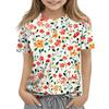 Summer Round Neck 3D Floral Printed Top Fashionable Casual Short Sleeved Children's Girl T-shirts