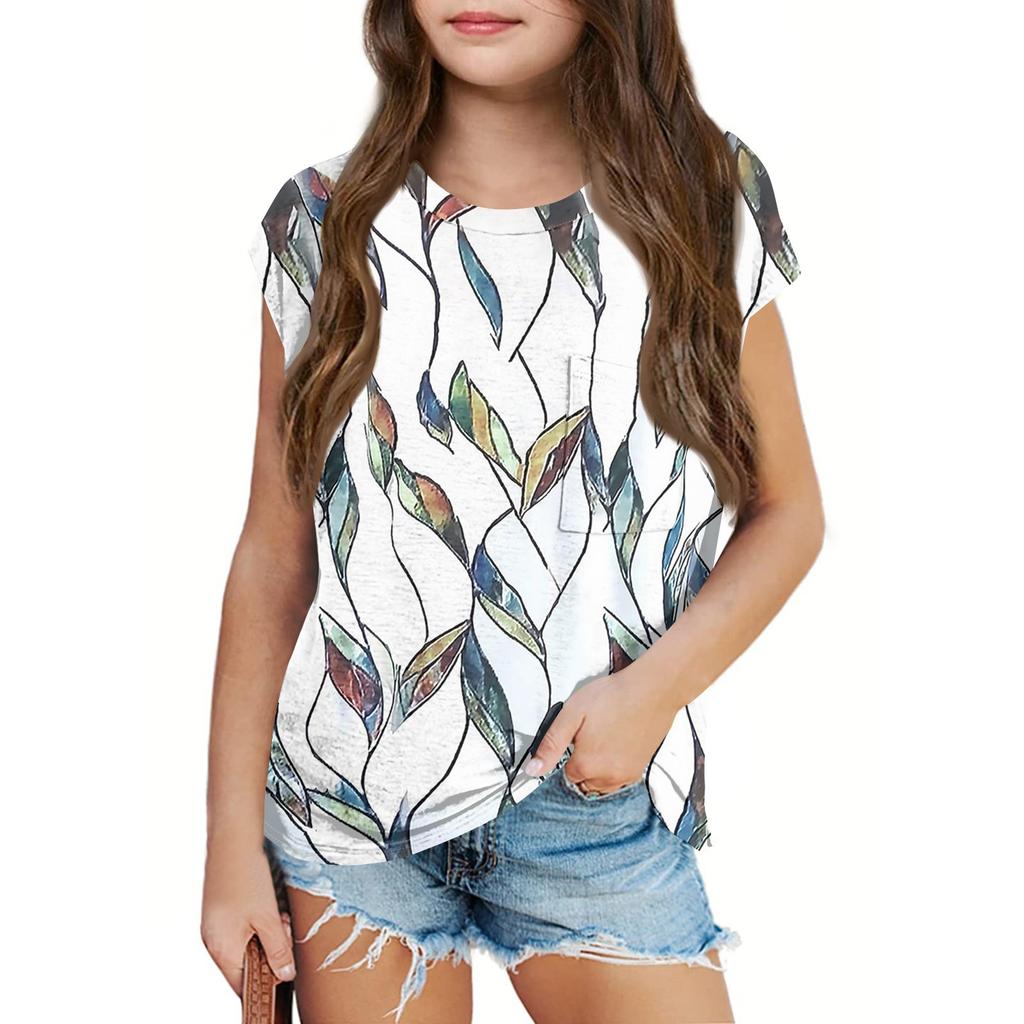 Summer Round Neck 3D Printed Top Fashionable Casual Short Sleeved Children's Girl T-shirts