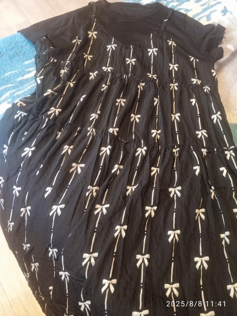 DIMANAF 2025 Summer Plus Size Dress Women Loose Casual Dress Basic Vintage Short Sleeve Bow Printing Long Dress