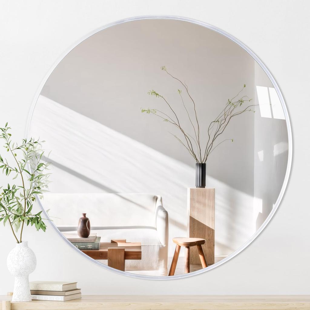 Homirio Wall Hanging Aluminum Round Makeup For Living Stylish Wall Hanging Mirror Diameter Mirror, Frame, Mirror, Mirror, Bathroom, Entrance, Room,
