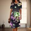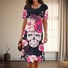 Women's Fashion Graceful Rose Skull Print Summer Spring Short Sleeve O-Neck Casual Dresses