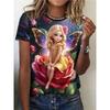 Women's Fairy Princess 3D Printed T-shirt, Y2K Fashionable Casual Street Clothing, Short Sleeved T-shirt, Round Neck T-shirt, Summer Outfit