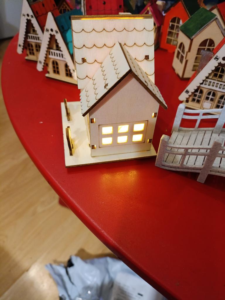 Festival Led Light Wood House Christmas Tree Decorations for Home Decoration Wooden House DIY Gift Window Decoration
