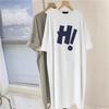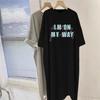 Medium and Long Knee-length Pure Cotton Gray Short-sleeved Dress Women's Summer New Foreign Style Loose Split-ended T-shirt Skirt