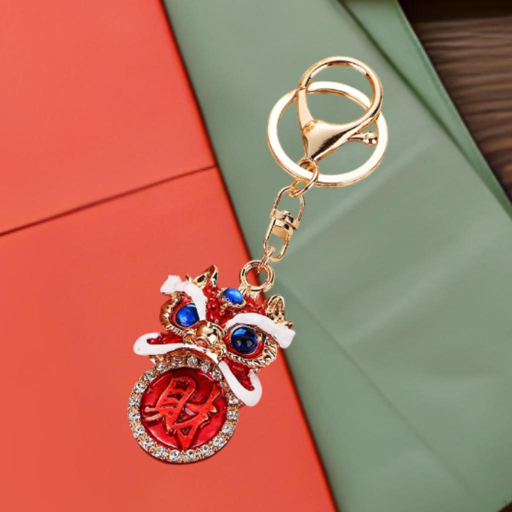 - 【Great Design】: This keychain features a beautifully crafted Chinese lion head, adorned with sparkling rhinestones that add a touch of elegance and cultural charm to your accessories