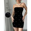 Women's Spring and Summer Sexy Velvet Elegant and Fashionable Strapless Slimming Pearl Dress