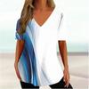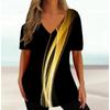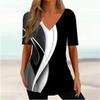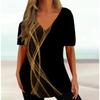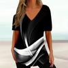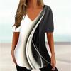 Retro Women's Ethnic Geometric Painting Harajuku T-shirt Women's Summer Casual Short Sleeve V-neck T-shirt