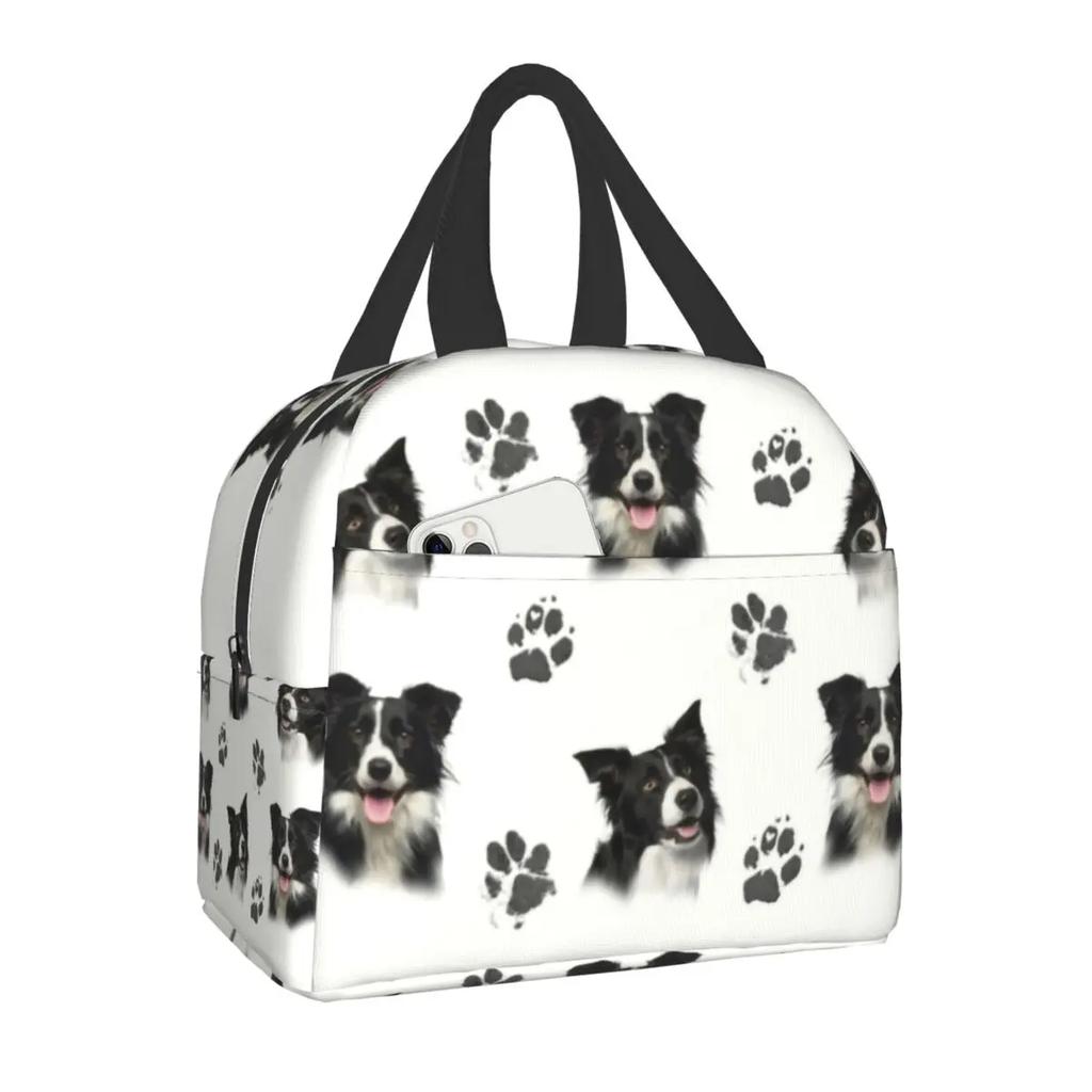 Custom Border Collie Lunch Bag Women Thermal Cooler Insulated Lunch Boxes for Kids School Children Fruit Fresh Storage Bag
