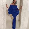 Elevate your evening look with this elegant one-shoulder dress, crafted from high-quality knitted material. Featuring a unique lotus leaf design, it adds a touch of sophistication and allure to any occasion. The dress is further enhanced with a glittering hip slit, offering a glamorous glimpse of style and movement. Perfect for special events, this beautifully designed piece promises to make a striking impression.