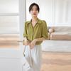 Polo Collar Short-sleeved Shirt for Women V-neck Puff Sleeve Chic Temperament Professional Mid-sleeve Chiffon Shirt