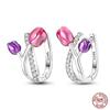 925 Sterling Silver Trendy Colored Tulip Earrings For Women Cubic Zircon Butterfly Double Hoop Earrings Fine Engagement Jewelry