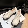 Spot Second Hair~ 2025 New Retro Black Single Shoes Women's Leather Thick-soled Versatile British Style Lace-up Small Leather Shoes.