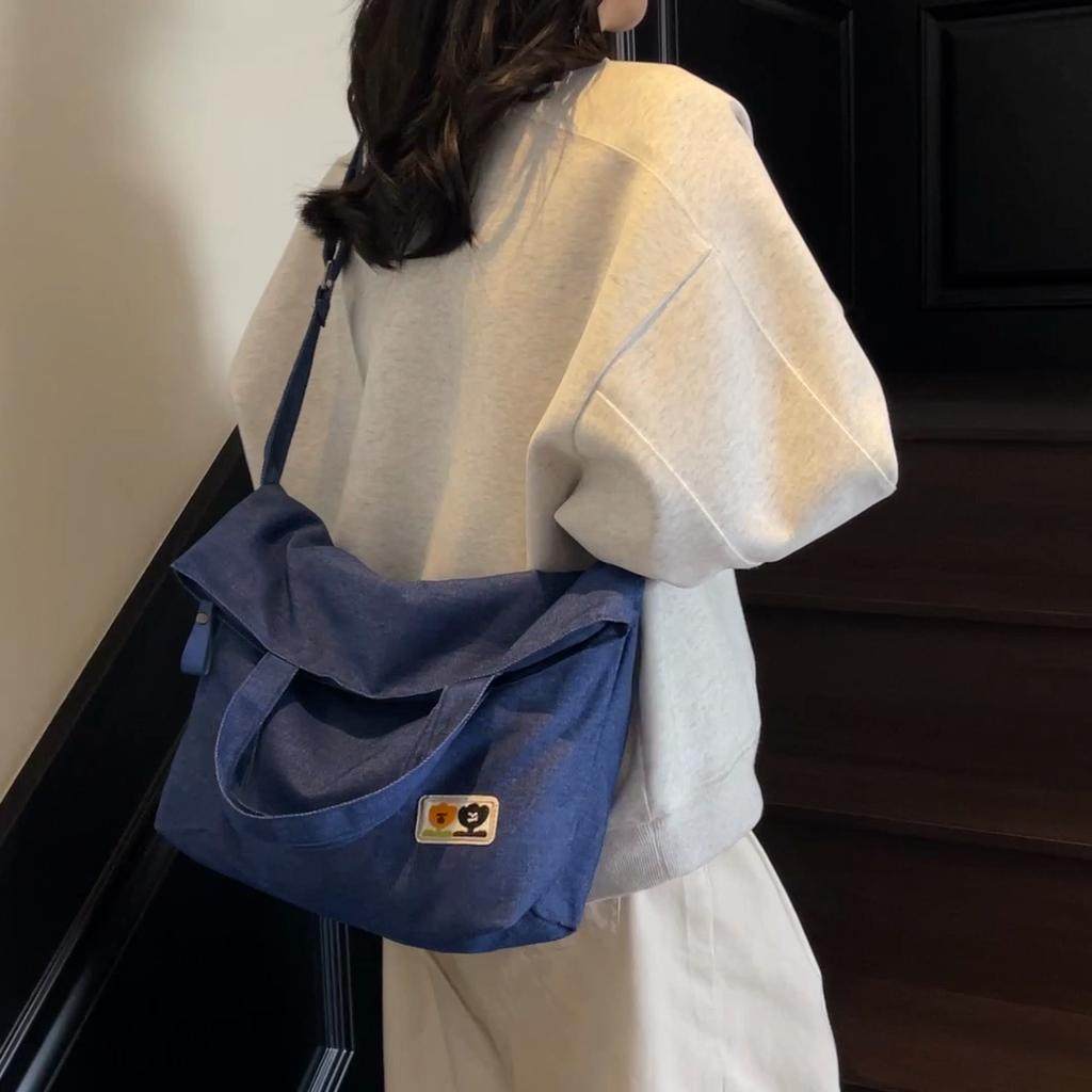 Large Capacity Student Tote Bag Solid Color Shoulder Crossbody Bag