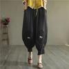 Women's Cotton and Linen Haren Pants Embroidered with Lace Casual Pants Elastic Waist Haren Women's Pants Cropped Pants