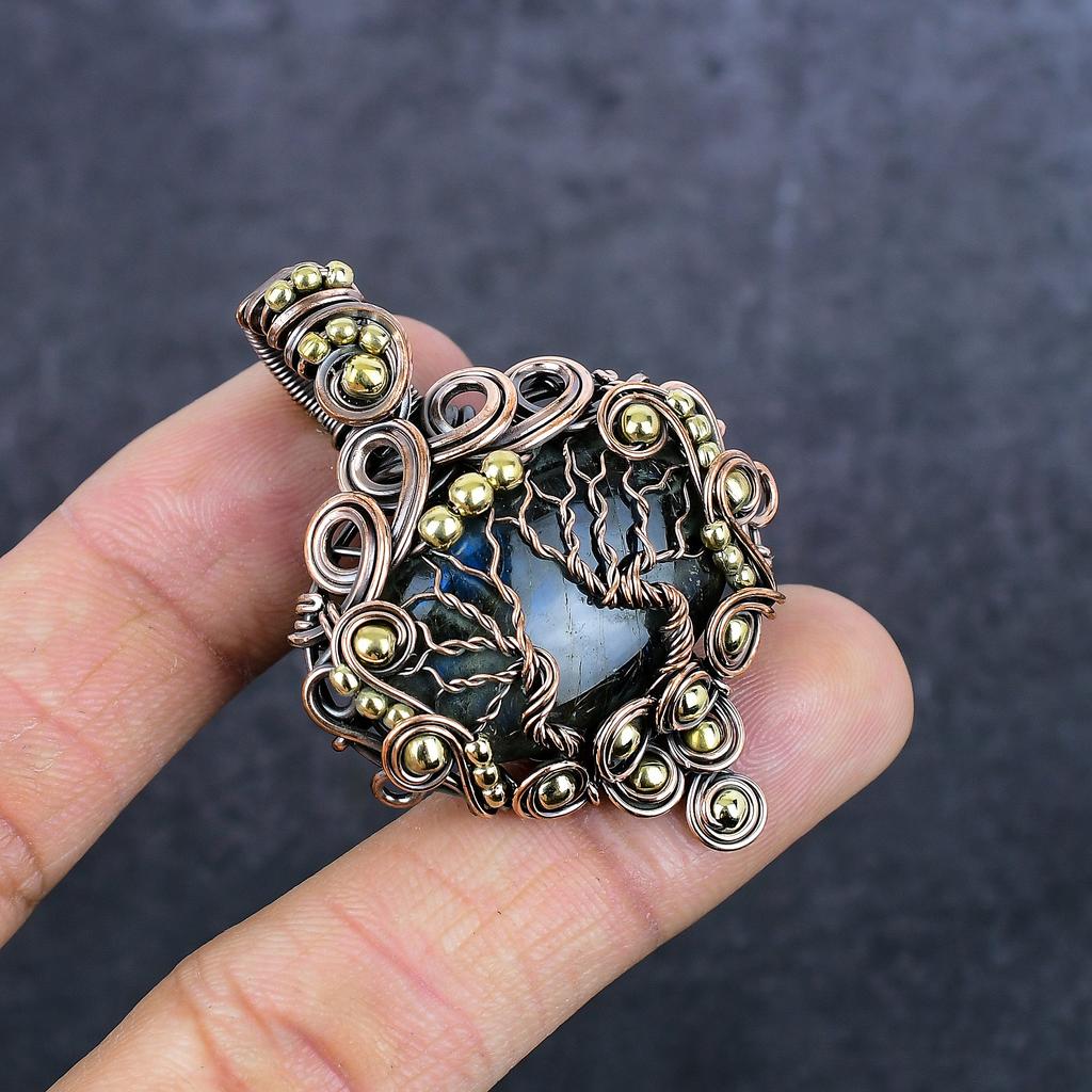 Natural Labradorite Gemstone Copper Wire Wrap Jewelry Pendant 2.05" Y0A58