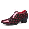 New Fashion Red Plaid Men's Dress Shoes Pointed Leather High Heel Shoes Men Height Increasing Wedding Shoes Men Zapatos Hombre