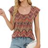 Spring and Summer New Printed Round Neck Striped Loose Short Sleeved T-shirt Top for Women