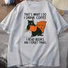 Cute Cat T-shirt for Women Men Books Coffee Cat Print T-shirts Funny Designer Comfortable Male Tee Shirt Male Clothing Shirts