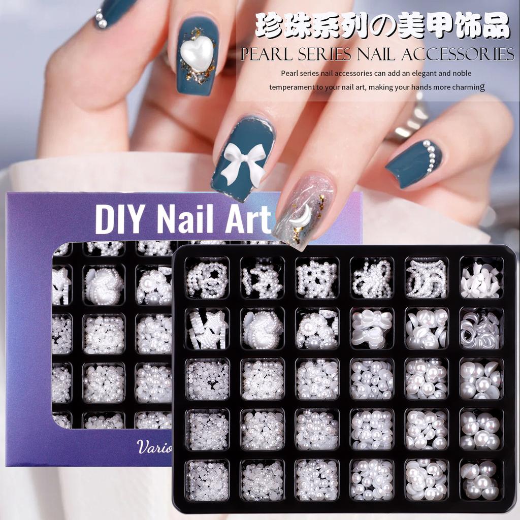 30 Grid Abs Semi-Round Pearl Nail Art Jewelry Special-Shaped Pearl Diy Decorative Accessories Mixed Size Jewelry