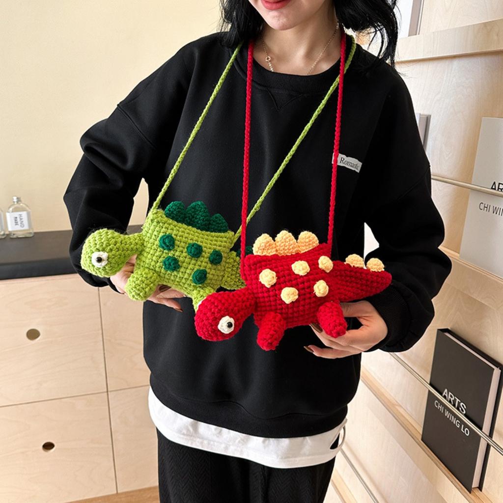 Crochet Bags for Women Dinosaur Shoulder Purses, Knit Bag CrossBody Bag for Girl Women