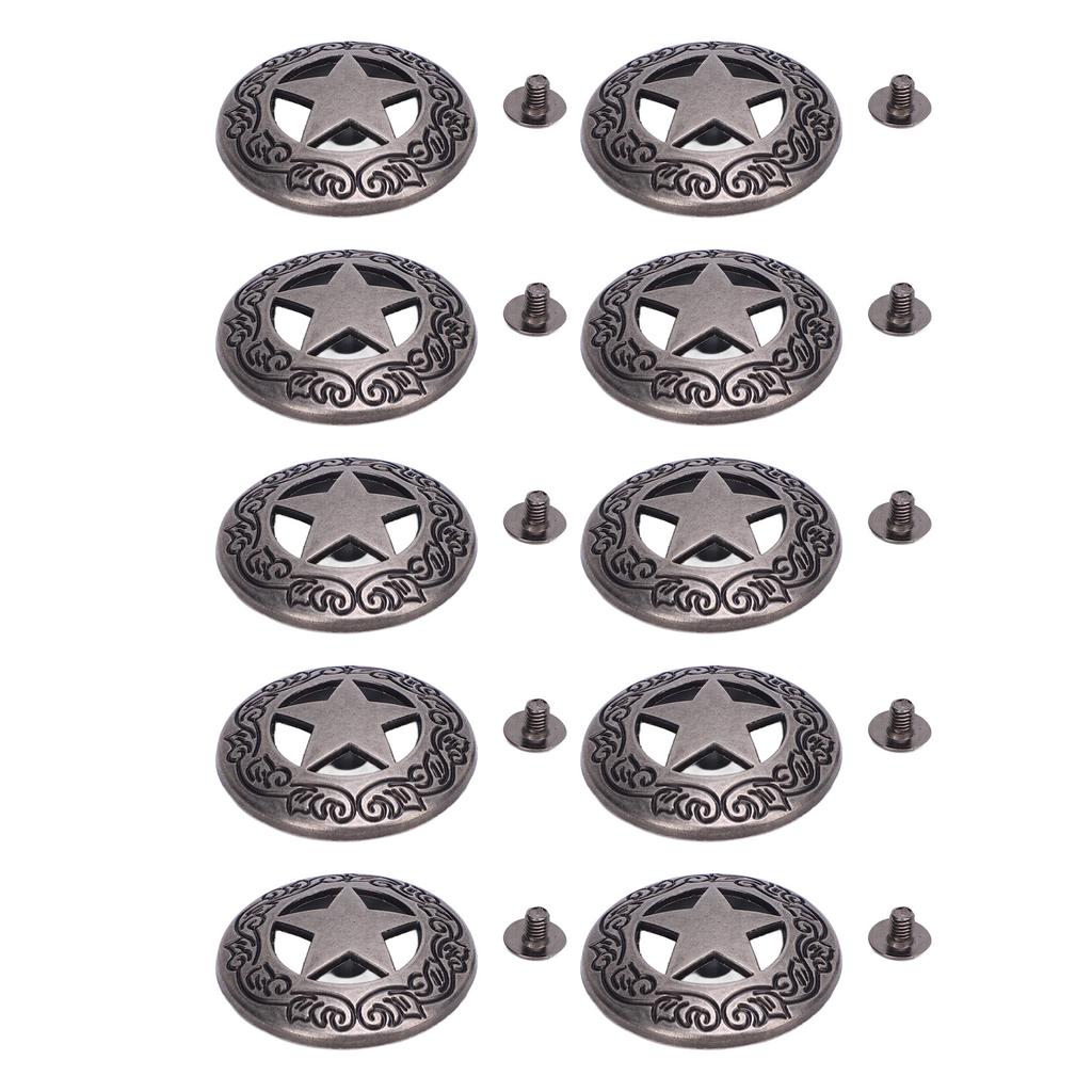 1. Specification: Providing 10 pieces 28mm hollow five pointed star rivets and 10 pieces 4.5mm crossed screws for combination use to meet your various decorating and fastening needs