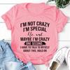 Crazy I'm Special Printed T-Shirts Women Short Sleeve Funny T Shirts Round Neck Tee Shirt Casual Summer Tops