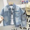 Boys Summer Short Sleeve Denim Shirt Solid Color Soft Handsome Jacket