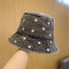 Color: denim white, embroidered flower cowboy pot hat, denim blue, embroidered flower cowboy pot hat, black, embroidered flower cowboy pot hat