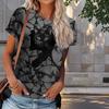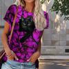 Women Summer T Shirt Black Cat Print Retro Fashion Short Sleeve Tees Casual Printed Tops