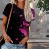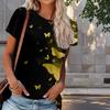 Women Summer T Shirt Butterfly Print Retro Fashion Short Sleeve Tees Casual Printed Tops
