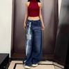 High Street Double Pole Embroidered Wide Leg Jeans for Women In Autumn and Winter Retro Loose Thin Slim Drop Straight-Leading Floor Pants
