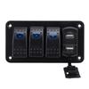 1. Dual USB Charging: The switch panel with 3 groups of rocker switches, equipped with 4.8A dual USB charging and a digital voltmeter, suitable for all types of circuit control, charging needs, and voltage monitoring. Dual devices charge simultaneously at fast speeds.