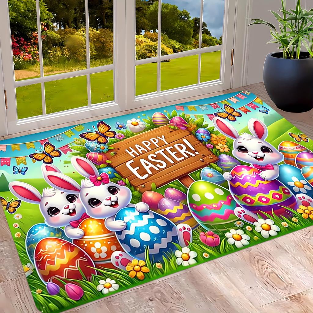 1Pcs Anti Fatigue Kitchen Rugs, Happy Easter Bunny Print Waterproof Non-Slip Thick Cushioned Kitchen Mat Heavy Duty Comfort Standing Mat for Kitchen