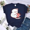 Embrace The Red Heart White Cat Summer 3D Printing Women T-Shirt Hip Hop Soft T Shirts All-Match Y2K Clothing O-Neck Casual Streetwear