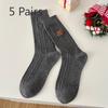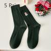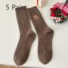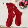 5 Pairs of Women's Autumn and Winter Linen Pattern Christmas Embroidery Trendy and Versatile Mid Calf Stackable Socks