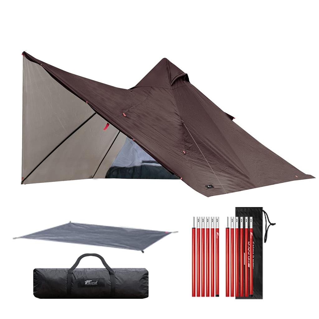 ✅ [Can also be used as a shelter or just the flysheet! ] It is also possible to set up only the fly sheet without an inner tent. The effective floor area is 280cm x 280cm, making it spacious and usable. You can make it even wider by creating a front room using a pole (sold separately). Recommended as a tent or shelter using a cot.