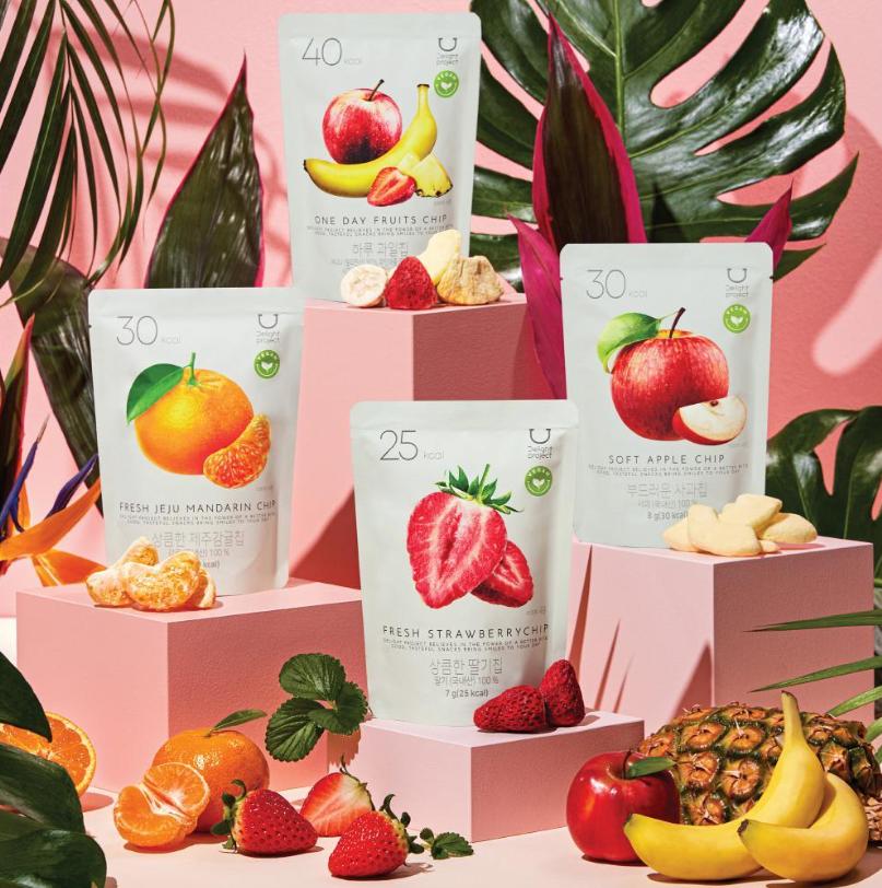 -. Description : Delight Project Fruit Chips offer a healthy and delicious vegan snack made from 100% real fruits. This set includes four popular flavors—Strawberry, Apple, Jeju Tangerine, and a Daily Fruit mix—carefully dried to preserve their natural sweetness and nutrients. Light, crispy, and full of flavor, these fruit chips are perfect for a guilt-free dessert or a quick, wholesome snack on the go.
