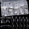 500Pcs Clear/Natural French Square Nail Tips Acrylic Nail Artificial Half False Flakes Nail Tips 10 Sizes with Clear Plastic Box