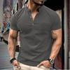 Men's Casual Polo Shirt V-neck Solid Color Versatile T-shirt Top