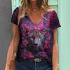 Short Sleeved Harajuku Tiger 3D V-neck Clothing Women's T-shirt Graphic Animal T-shirt
