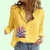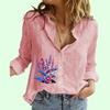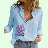 Women Fashion Button-up Shirt Summer&fall Cotton Linen Floral Print Top Ladies Casual Long Sleeve Blouse