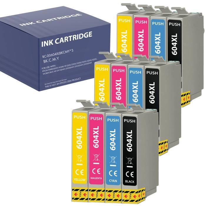 Ink Cartridge - Epson - 604XL - Pack of 12 - Black, Cyan, Magenta, Yellow - Compatible with WF-2950, XP-4200